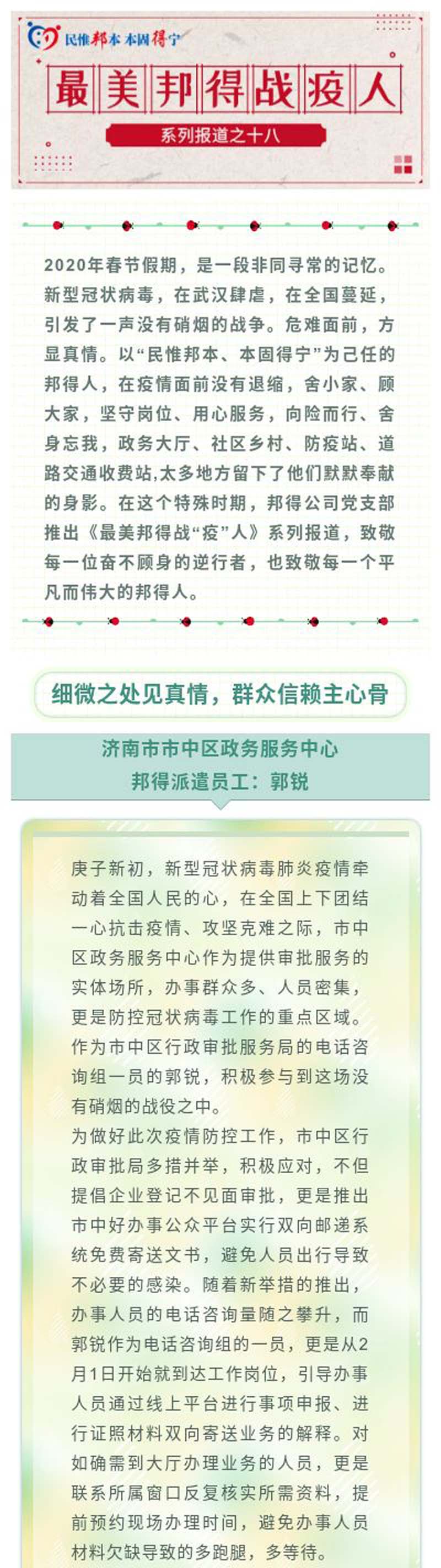 最美邦得戰(zhàn)“疫”人 — 系列報道之(十八)