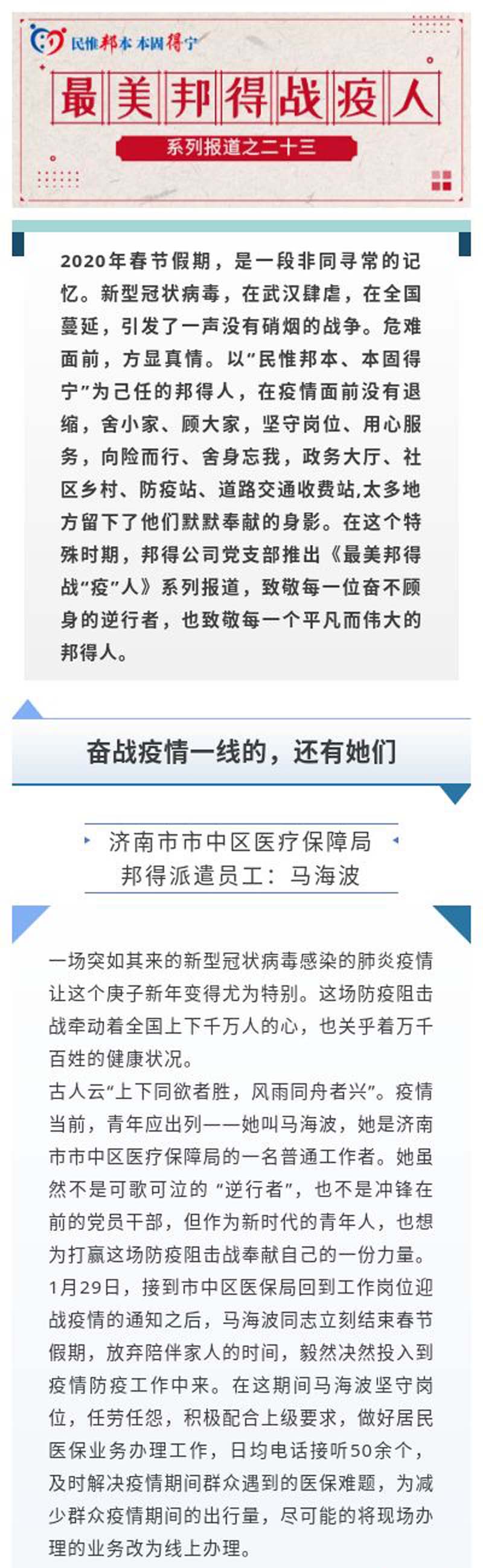 最美邦得戰(zhàn)“疫”人 — 系列報道之(二十三)