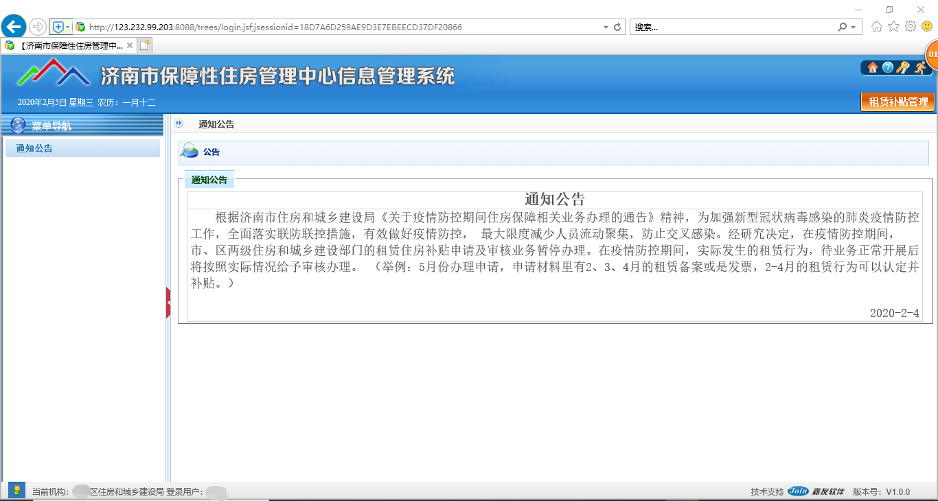 2020.02.05登錄租賃住房補(bǔ)貼申報(bào)系統(tǒng)僅有該通知無法申報(bào)補(bǔ)貼具體請查看當(dāng)天群公告.png